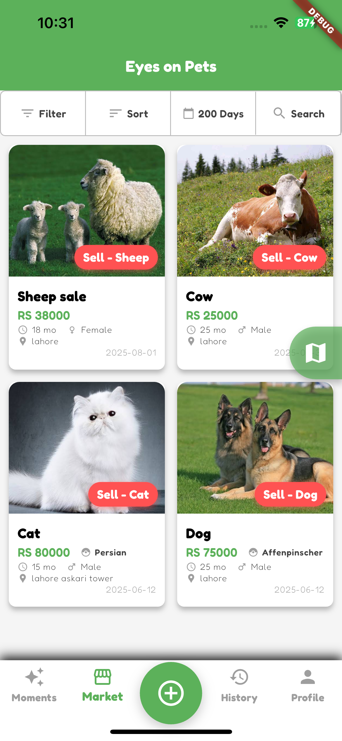 Eyes on Pets is built to make pet buying, selling, and adoption easier than ever. Explore nearby pets on the map, use powerful filters to find exactly what you want, and connect with the community through timelines. Whether you're looking to find a new furry friend or share a moment, everything starts here.